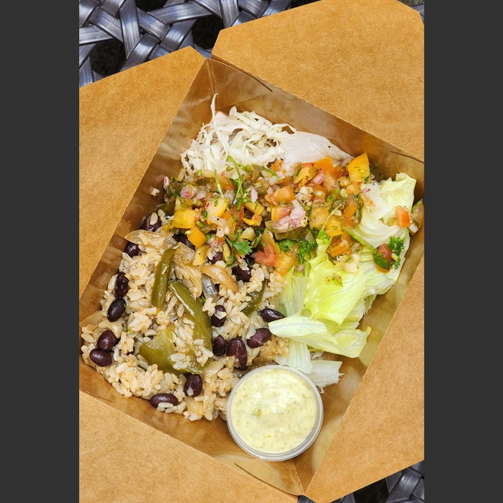 Introducing the Power Taco Salad, a perfect vegetarian meal packed with wholesome ingredients for a nutritious and satisfying experience. This hearty salad features a base of brown rice, sautéed fajita bell peppers and onions, black beans, and pico de gallo, topped with crisp lettuce and raw shredded cabbage for added crunch. Served with a side of our signature house-made jalapeño crema, it delivers bold flavors with every bite. The Power Taco Salad is designed for health-conscious individuals looking for a balanced, protein-rich vegetarian option.